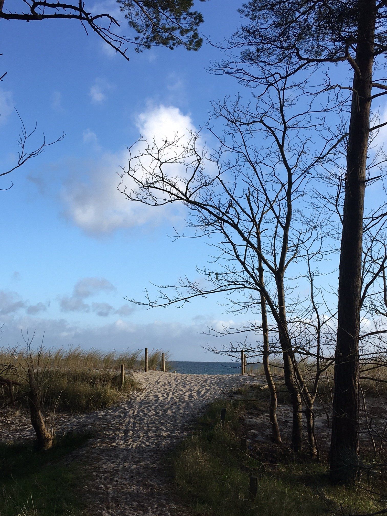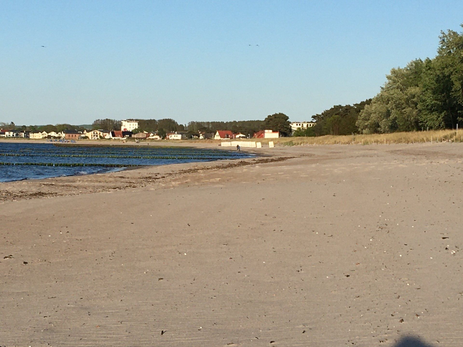 Nach einem kurzen Sprung über die Straße und durch den Dünenwald steht man mit den Füßen schon in der Ostsee.