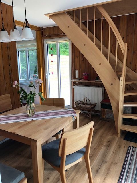 - Im Vorraum des Ferienhauses finden Sie einen Esstisch für 4 Personen, die Garderobe und die Treppe ins Dachgeschoss.