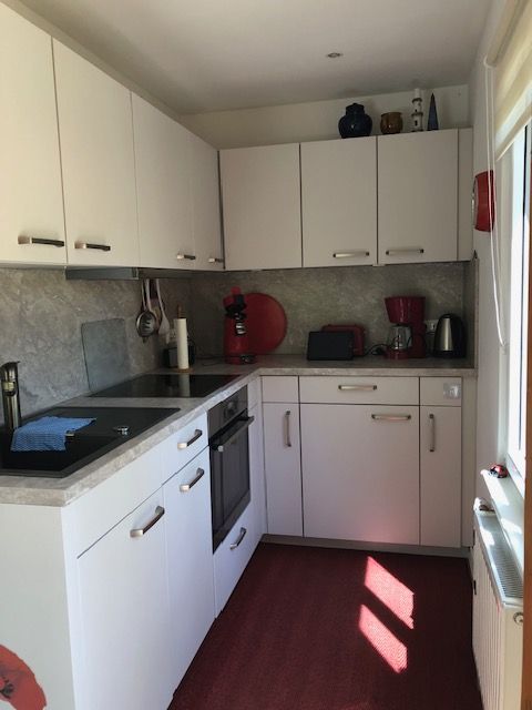 - Die moderne offene Küche ist mit einem Induktionskochfeld, einer Spülmaschine, einem Herd und einem Kühlschrank mit 3 Stern Kältefach ausgestattet.
