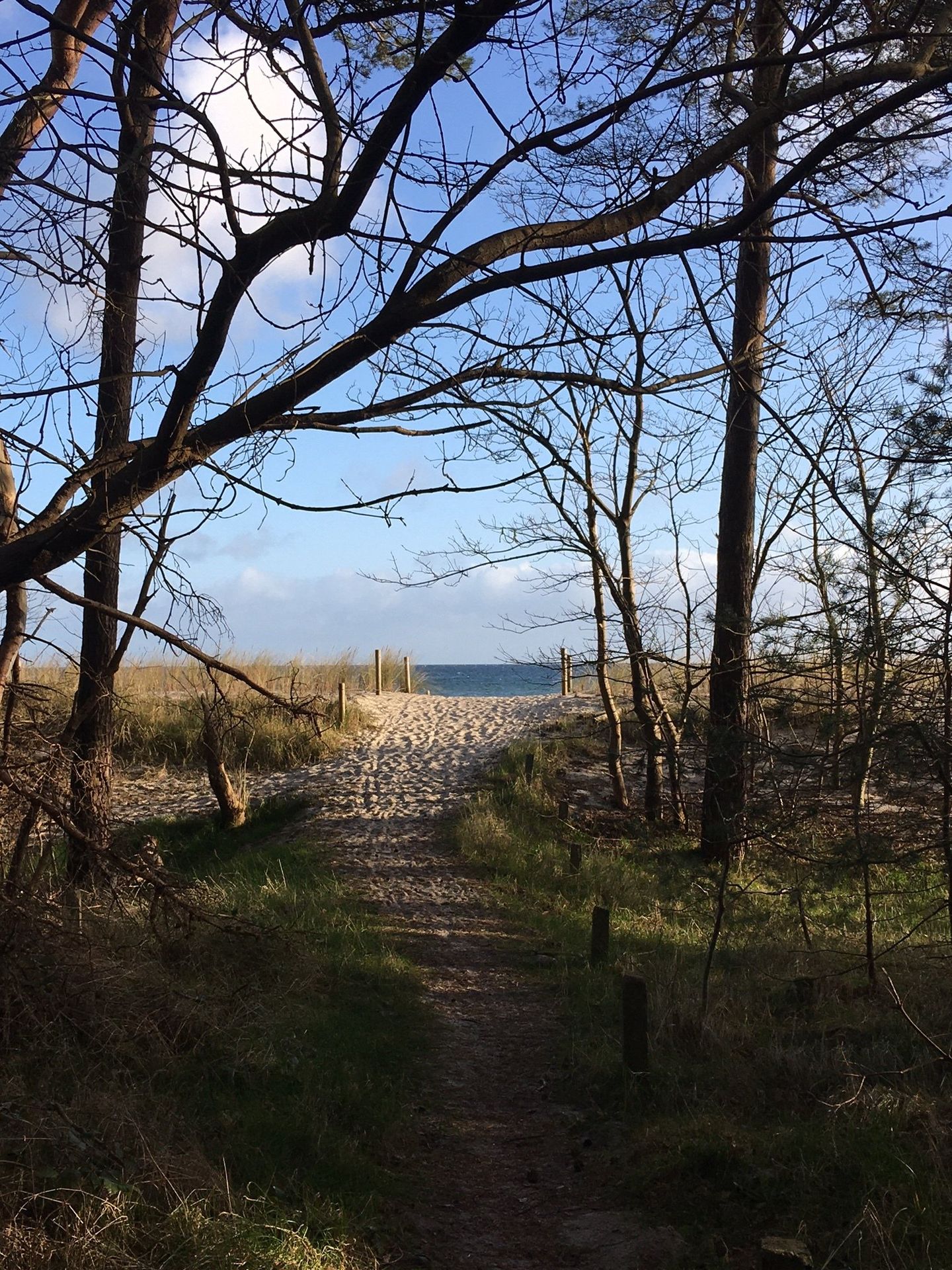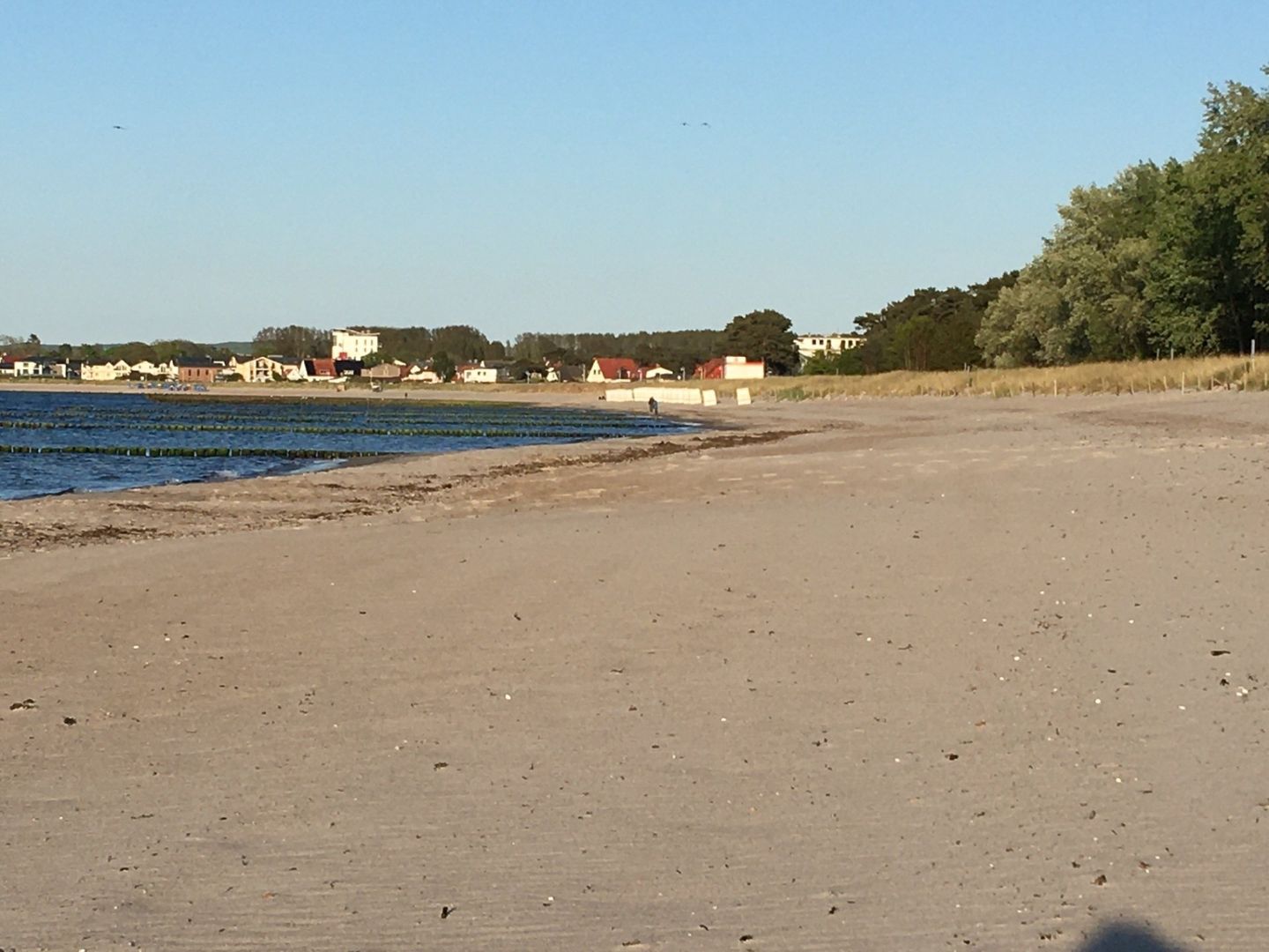 Nach einem kurzen Sprung über die Straße und durch den Dünenwald steht man mit den Füßen schon in der Ostsee.
