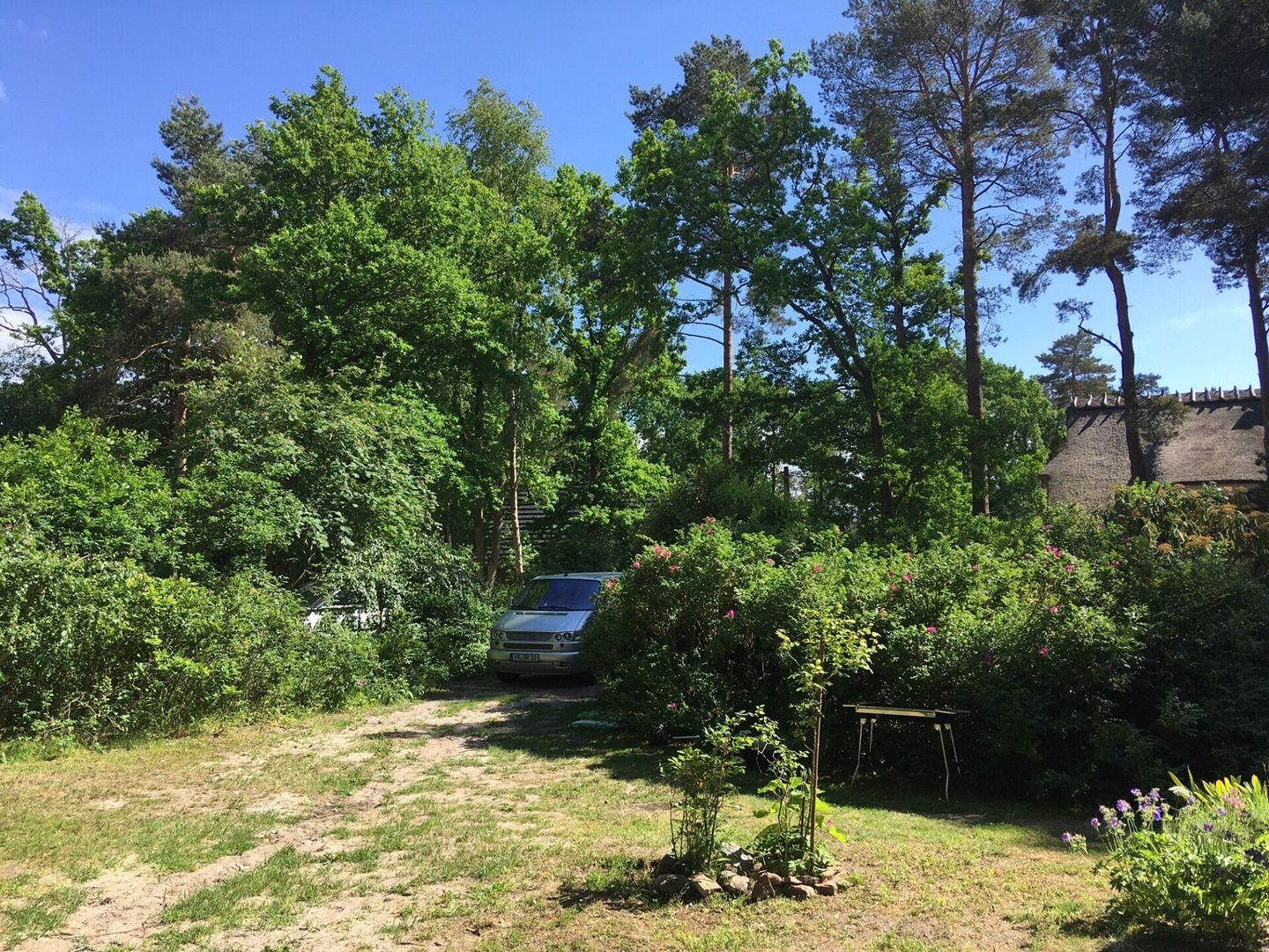 Es handelt sich um ein Waldgrundstück mit Kiefern, Tannen, Sträuchern. Kleine Rasenflächen sind vorhanden. Sie gelangen zum Strandübergang 13 von Glowe, indem Sie nur die Landstraße L30 überqueren. Ein Parkplatz befindet sich auf dem Grundstück. Bäume, Sträucher und Pflanzungen bitten wir freundlich zu behandeln.