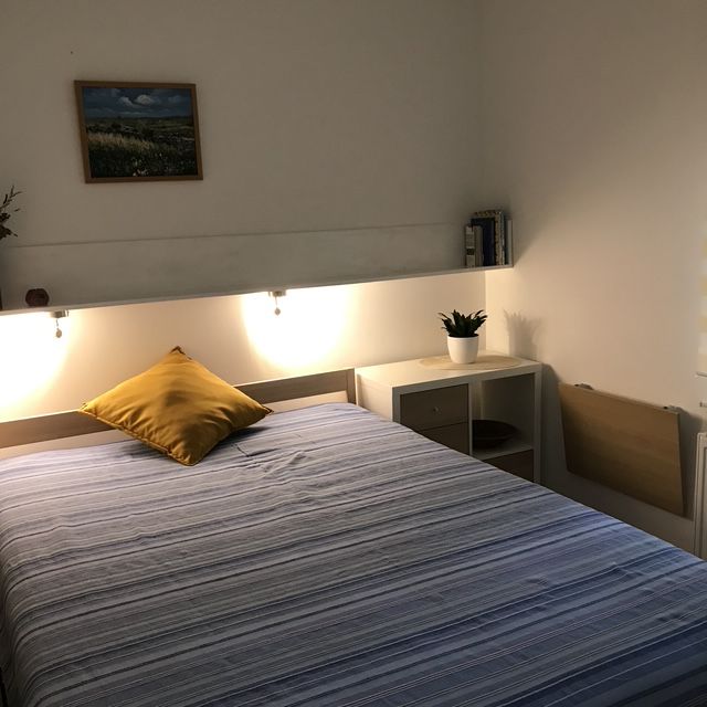 - Der Schlafraum hat ein etwas höher gelegenes Seniorenbett von 140cm Breite und einen 3-türigen Kleiderschrank.