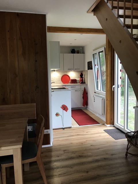 - Im Vorraum des Ferienhauses finden Sie einen Esstisch für 4 Personen, die Garderobe und die Treppe ins Dachgeschoss.